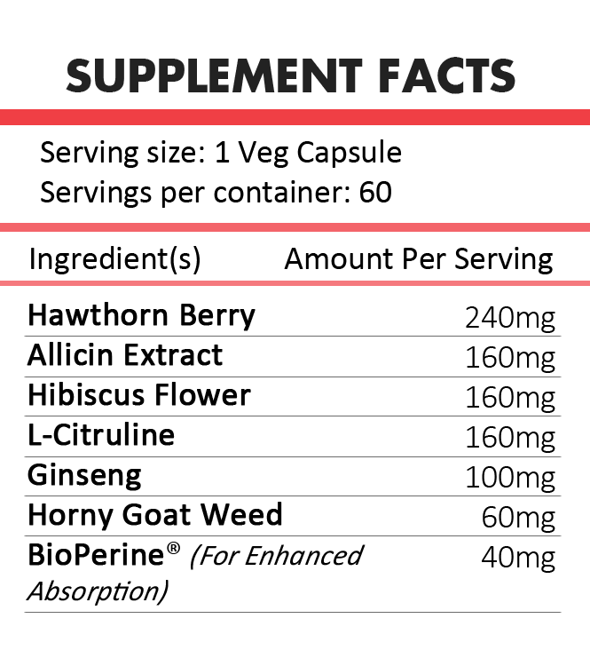 This supplement is packed with natural herbs & spices that are known for aiding blood flow and vascular integrity, as these things are critical to male libido. The primary ingredient, Hawthorn Berry, strengthens the heart muscle, while its secondary ingredient, Allicin Extract (garlic), lowers blood pressure, and softens the vascular walls.